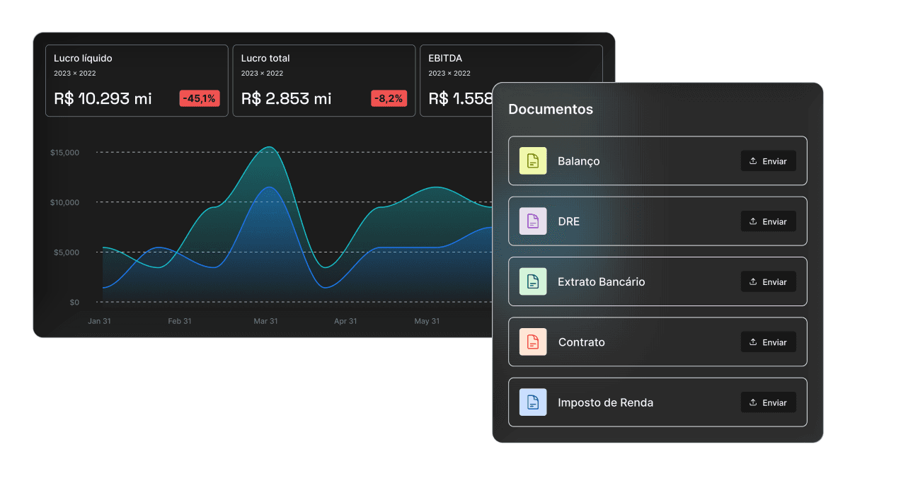Envie seus documentos financeiros como Balanço, DRE, extrato, IR, contrato e deixe que o Sinky Analytics extraia os dados com precisão, interprete os números e converta tudo em insights prontos para decisões estratégicas.