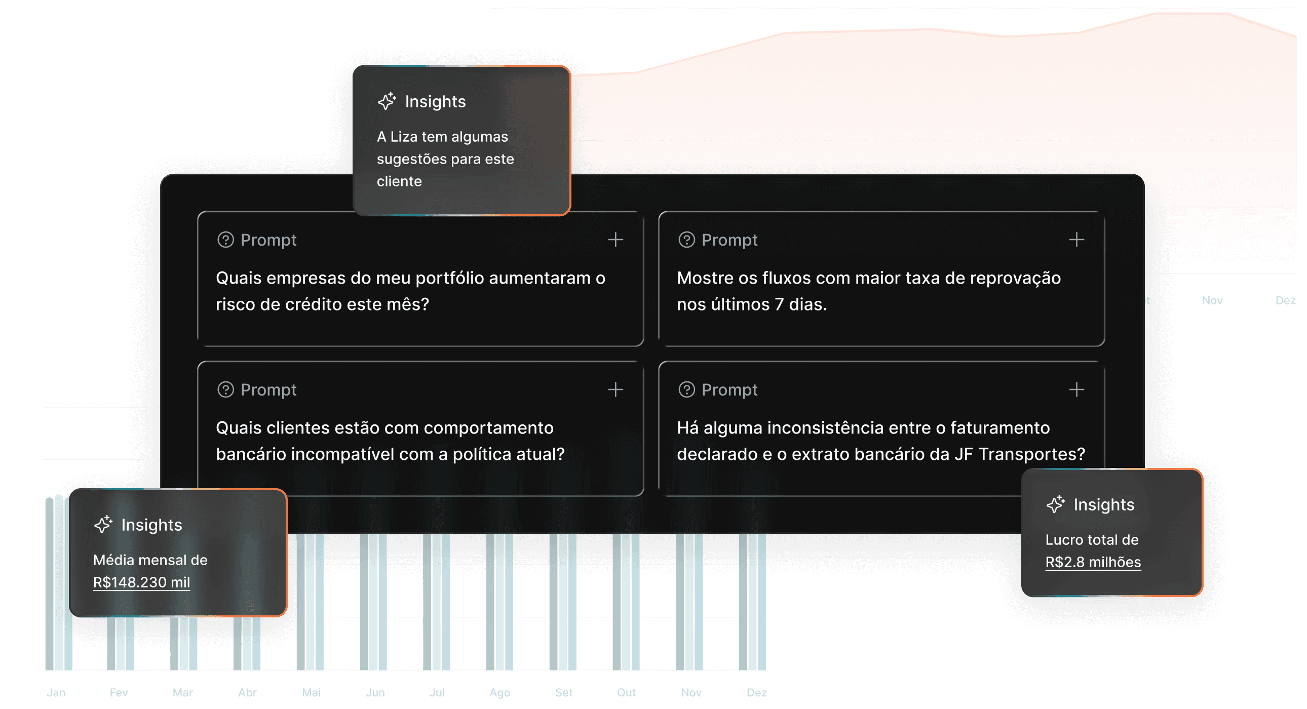 Identifique tendências, antecipe riscos e descubra oportunidades com algoritmos que evoluem continuamente a partir dos seus dados. Com alertas inteligentes e recomendações contextuais, você age com antecedência e reduz riscos com precisão.